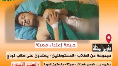 جريـ.ـمة إعتداء بشيـ.ـعة بحق طالب كردي من أهالي ناحية معبطلي «منفذها 5 مستوطنين»