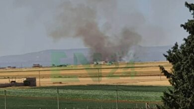 اندلاع حرائق في الأراضي الزراعية نتيجة القصف التركي على قرى ريف حلب الشمالي .