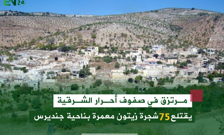 أفاد مراسل عفرين نيوز24 بأن المرتزق أبو فواز القيادي في صفوف أحرار الشرقية و المسؤول العسكري عن قرية مسكة بناحية جنديرس ، أقدم باقتلاع 75 شجرة زيتون معمرة من جذورها في قرية خالطا بناحية جنديرس و التي تعود ملكيتها للمواطن ” عبدو حنان حمو ” .